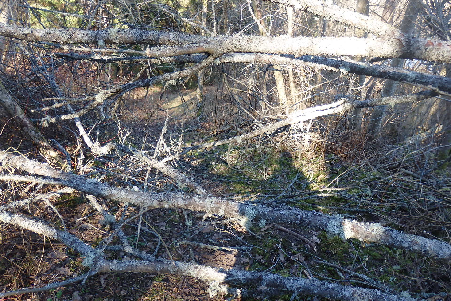 No llevamos mucho caminado cuando nos encontramos con los primeros obstáculos. Como después veríamos, hay muchos árboles caídos en el bosque y algunos de ellos bloquea el sendero.