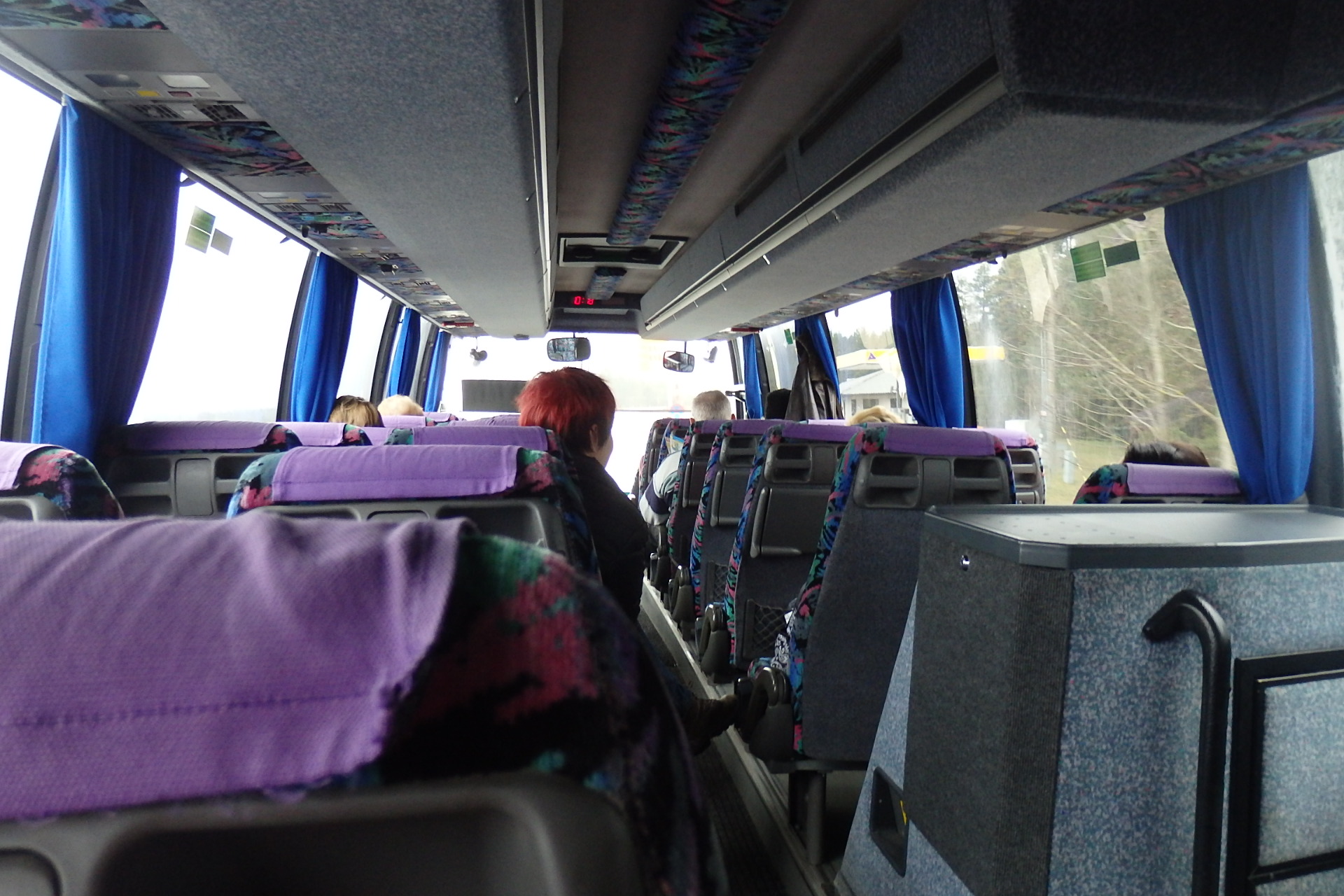 Estoy saliendo de la gasolinera cuando veo que Victor me hace señas. El autobús se acerca. Salimos corriendo y tenemos la suerte de poder coger este bus. Pagamos nuestros billetes (4.40 cada uno) y por fin nos podemos sentar a descansar.