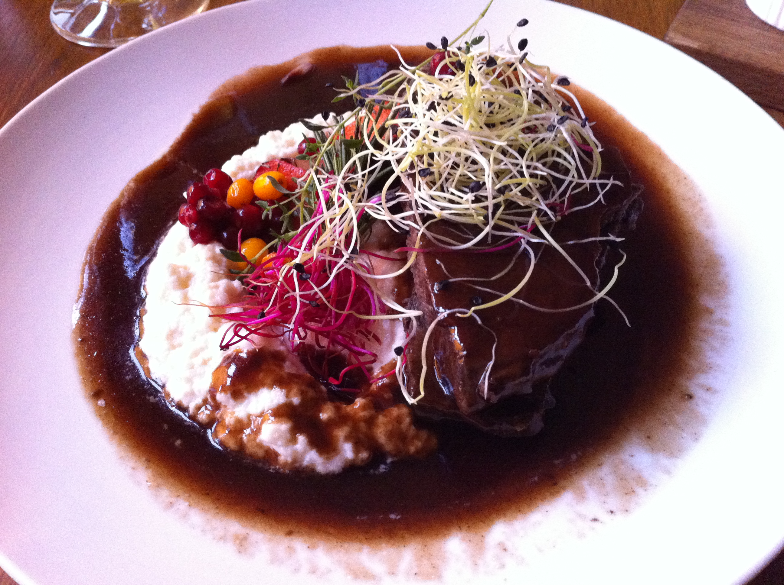 Tras haber ido varias veces, os recomiendo varios entremeses (pan de ajo, empanadillas rusas con crema agria, palitos de pollo con ajo y limón), las costillas, el magret de pato y el salmón. Podéis mirar el menú completo aquí.