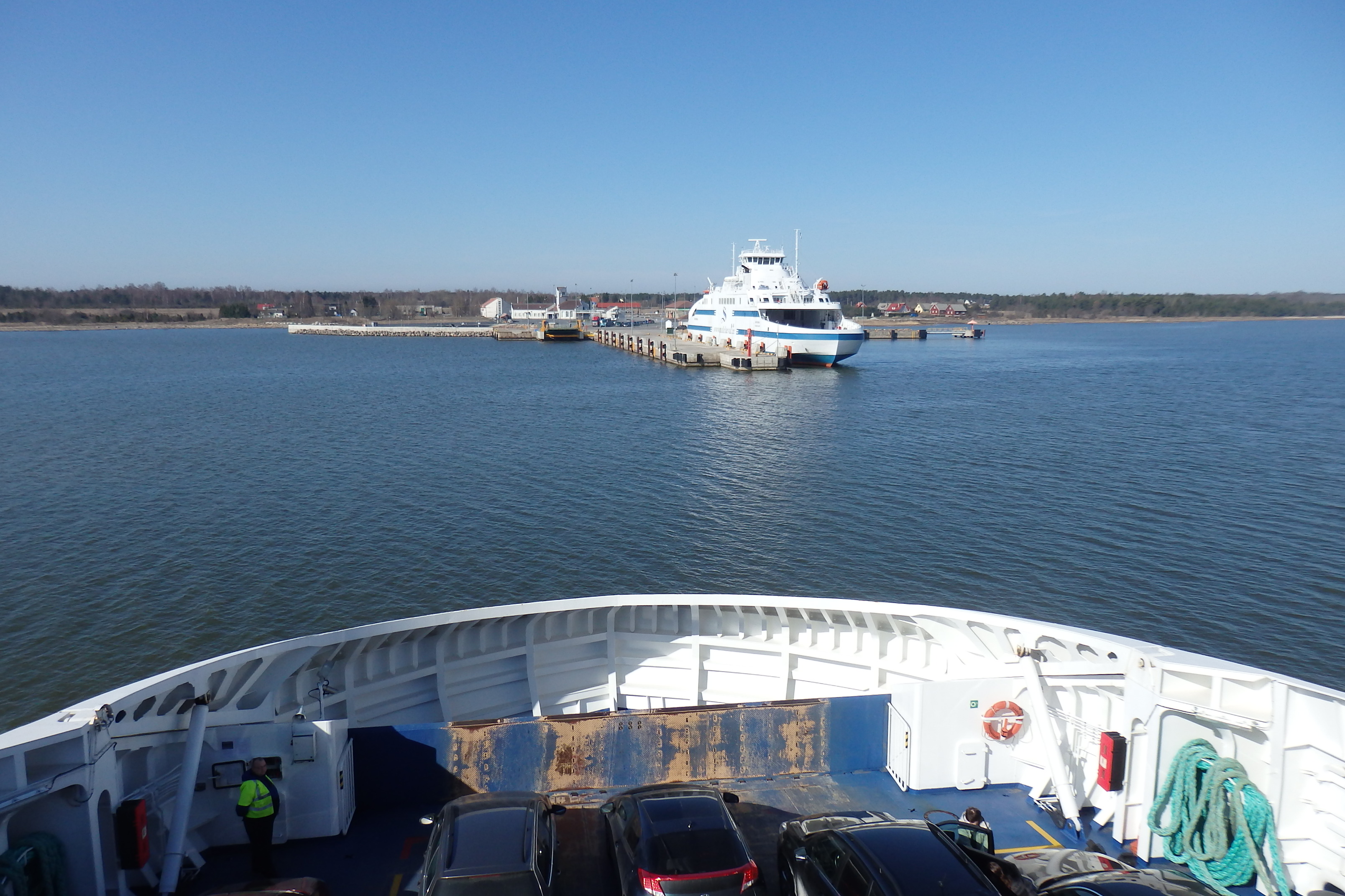 El barco se queda en puerto el mínimo tiempo imprescindible. En cuanto estamos todos dentro, zarpa rumbo al puerto de Kuivastu, en la isla de Muhu.