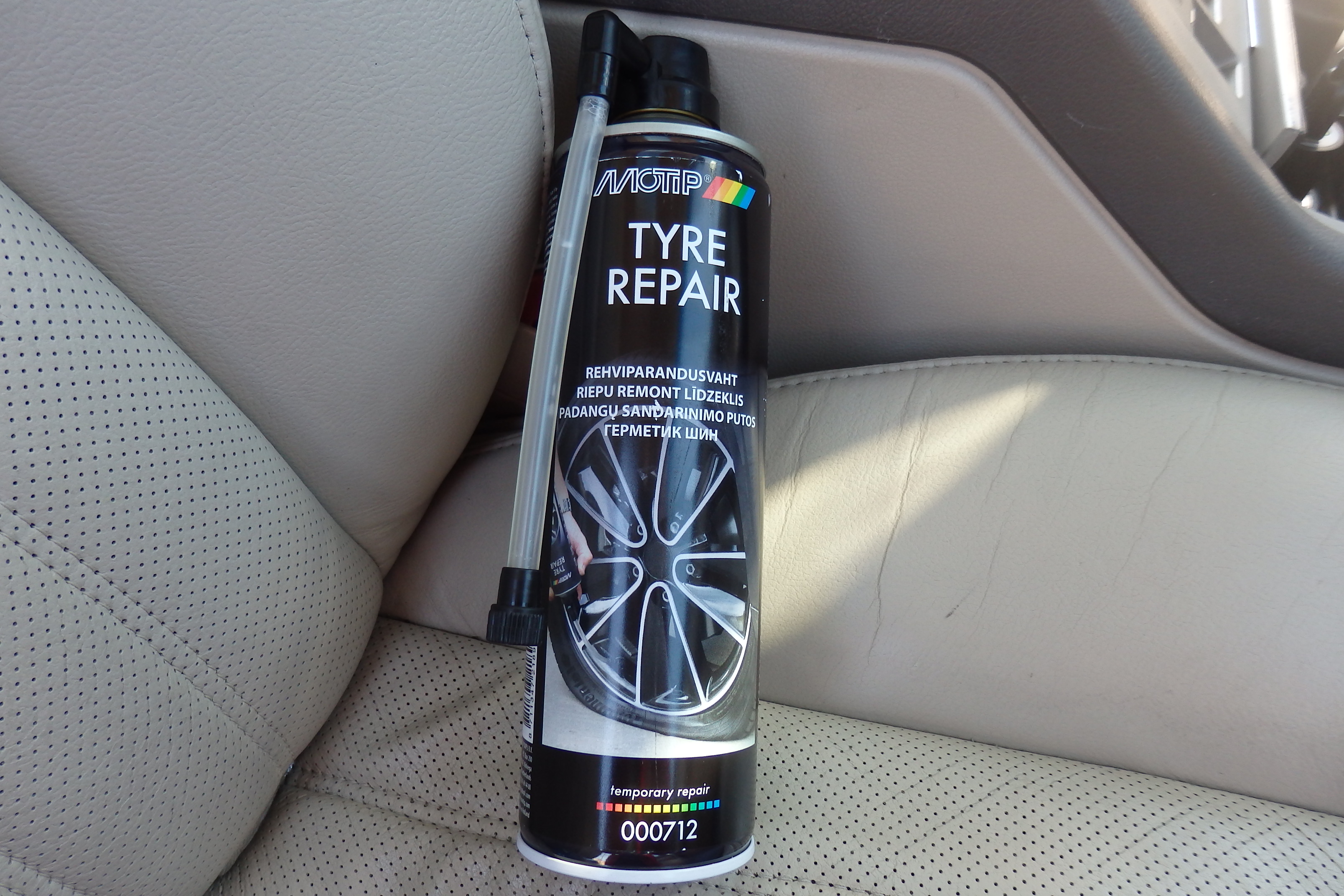 Menos mal que nuestro super coche (super por lo de grande, porque en otros aspectos deja mucho que desear..) va equipado con un kit de reparación de pinchazos muy sofisticado.