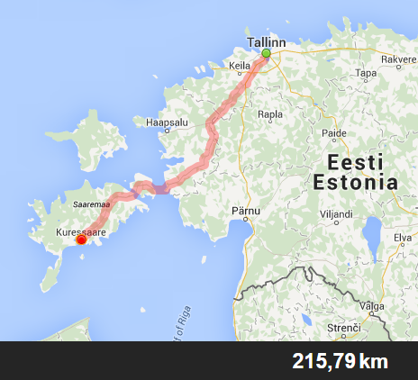 Volvemos a sacar el mapa y vemos que hay una ciudad (Orissaare) nada más atravesar el supuesto puente que une la isla de Muhu con la isla de Saarema. Ahí debe haber una gasolinera donde podremos comprobar si la rueda está bien y podremos llenarla de aire.