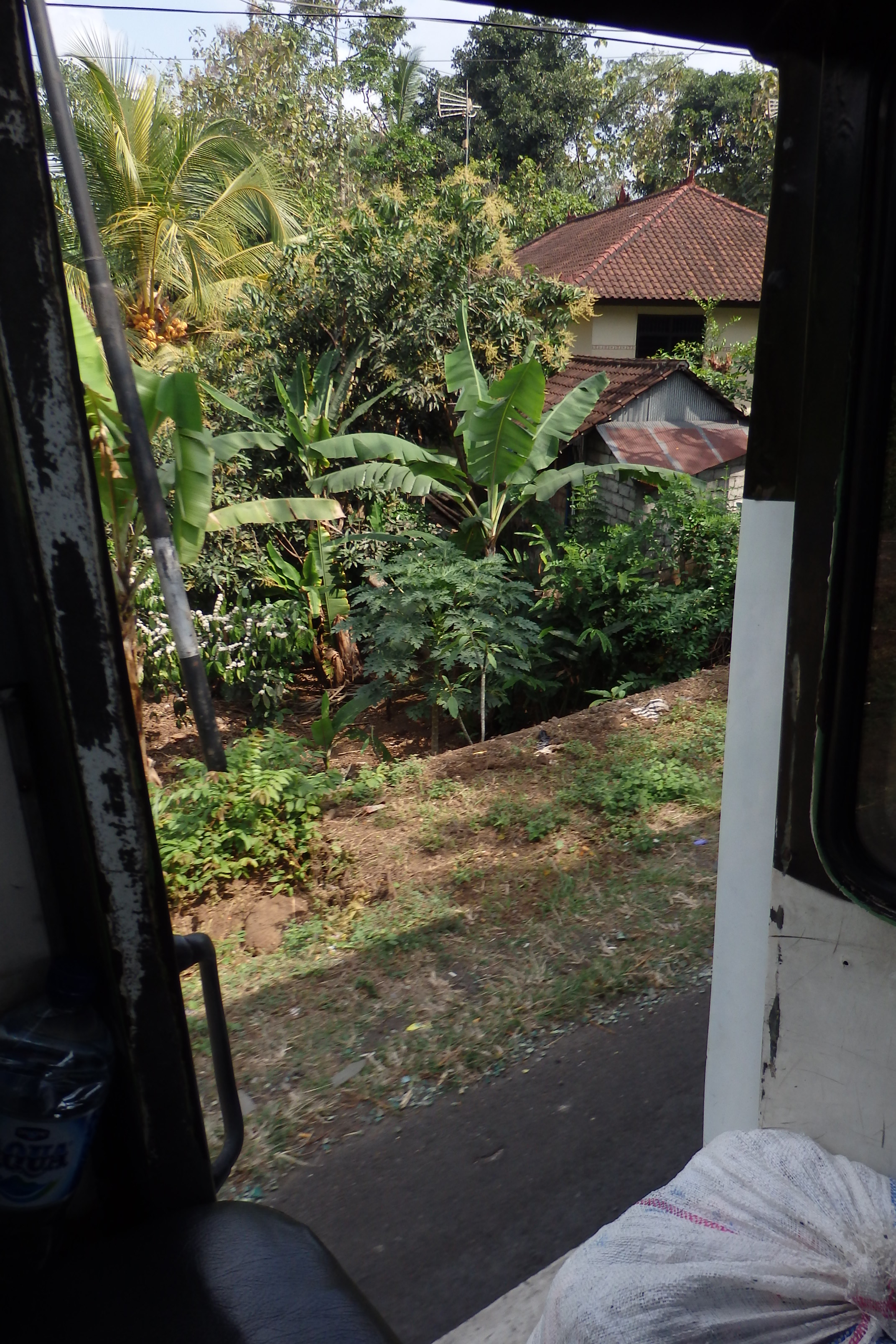 Tras una hora y pico de camino, la suerte ha querido que nos cruzáramos con un autobús que se dirigía a Gilimanuk. Le hemos hecho señales y ha parado a recogerme.