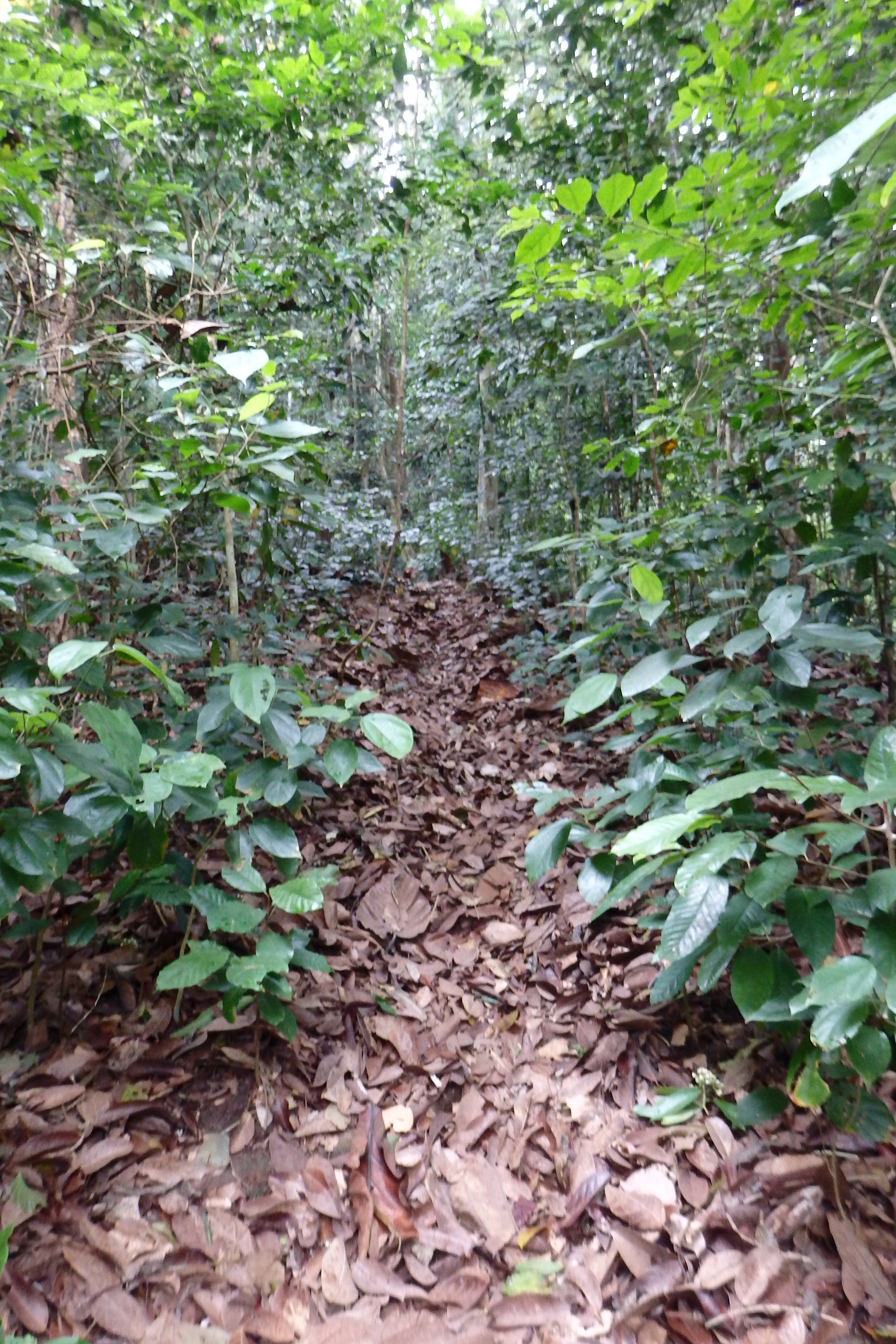 La primera de ellas que usa es «problem» y la dice nadas mas llegar arriba de la colina (a todo esto, íbamos por una selva que no estaba nada mal, la verdad). El camino sigue cuesta abajo y me dice que «problem» y con las manos hace como si lloviera. Se ve como la niebla va subiendo la ladera, pero no parece gran cosa.