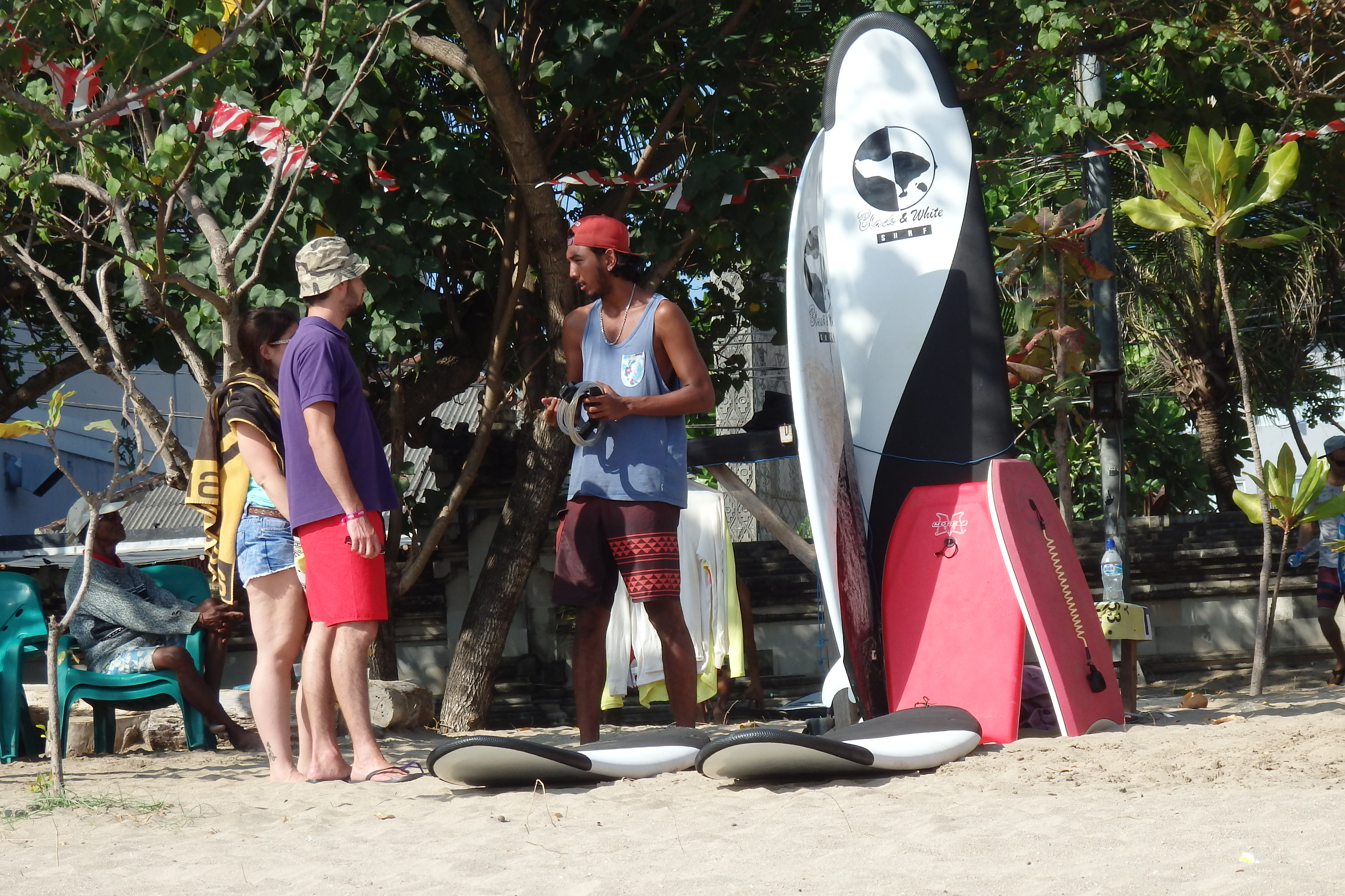 Como ya os dije ayer, hay mucha gente aprendiendo a surfear, y en la arena hay algunos puestecillos que alquilan tablas.